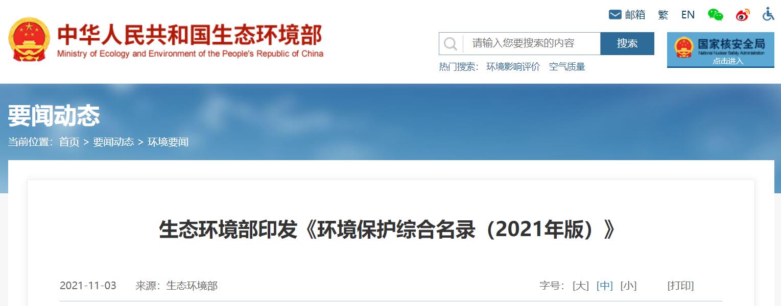生態(tài)環(huán)境部印發(fā)《環(huán)境保護(hù)綜合名錄(2021年版)》