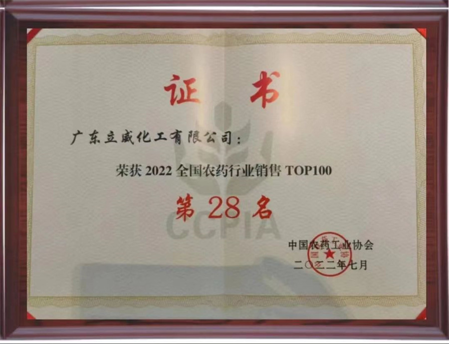 廣東立威再獲中國農(nóng)藥行業(yè)銷售30強